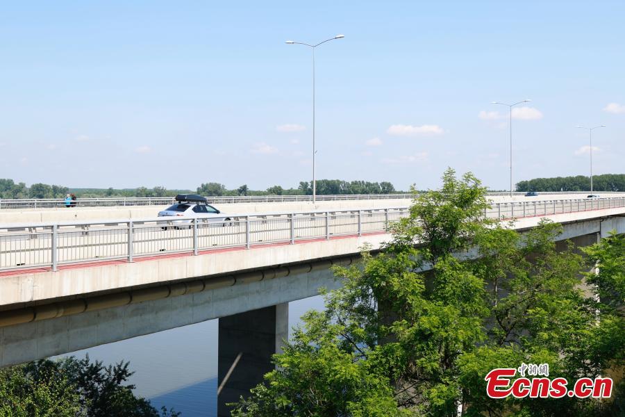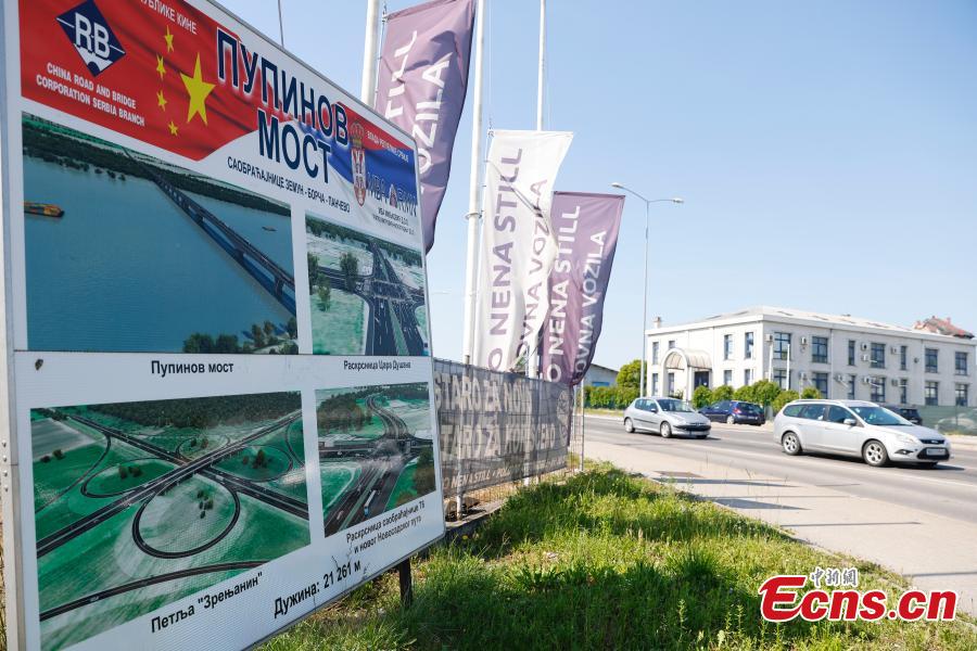Vehicles run on the Zemun-Borca Bridge in Belgrade, Serbia, May 5, 2024. (Photo: China News Service/Han Haidan)