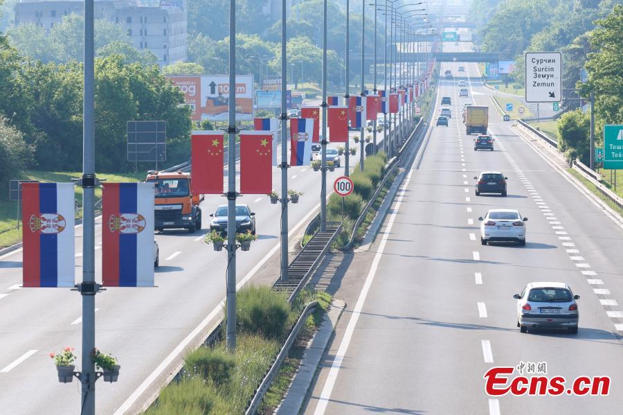 Chinese and Serbian flags are hung along a street ahead of a state visit by Chinese President Xi Jinping, in Belgrade, Serbia, May 5, 2024. (Photo: China News Service/Han Haidan)