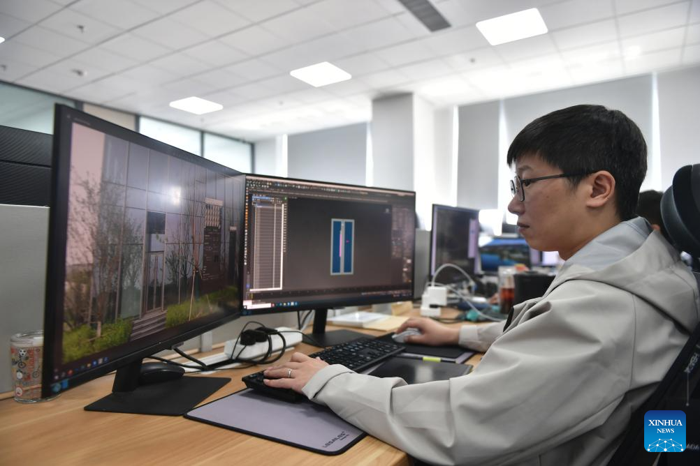 A staff member works on a three-dimensional modeling at Yueneng Technology in Shenyang, northeast China's Liaoning Province, May 7, 2024. In recent years, Liaoning Province has actively fostered an environment conducive to the development of the software industry and nurtured clusters of software enterprises. (Xinhua/Yang Qing)