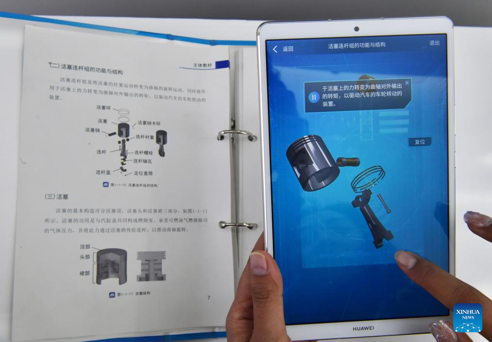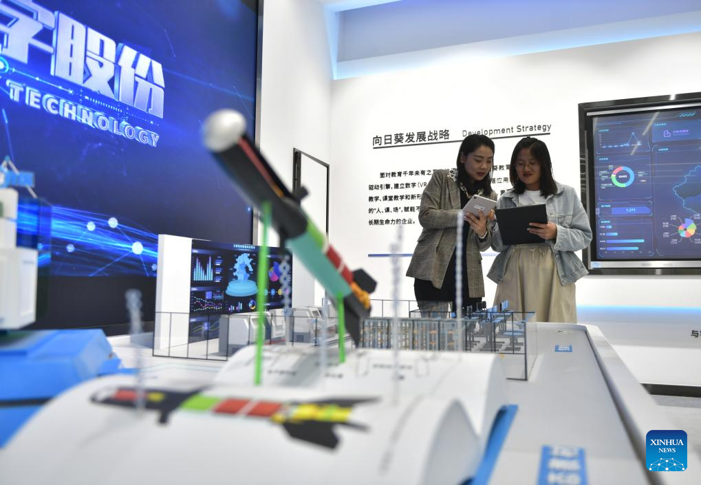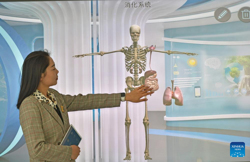 A staff member shows a three dimensional demonstration of teaching material at Sunflower Digital Technology in Shenyang, northeast China's Liaoning Province, May 7, 2024. In recent years, Liaoning Province has actively fostered an environment conducive to the development of the software industry and nurtured clusters of software enterprises. (Xinhua/Yang Qing)