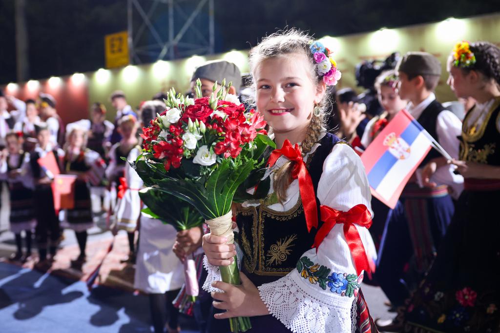 Serbian children presented flowers to Xi and his wife, Peng Liyuan, and waved the national flags of China and Serbia. Serbian people dressed in national costumes sang and danced to welcome them.