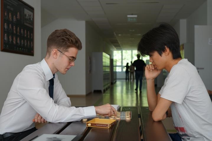When a class was over, eleventh-grade students Sanyi and Li Fulin started playing Chinese chess in a corridor. Sanyi once lived in China with his father. He was sent to the bilingual school by his parents after they saw the prospering development of China and the huge potential of Hungary-China cooperation.