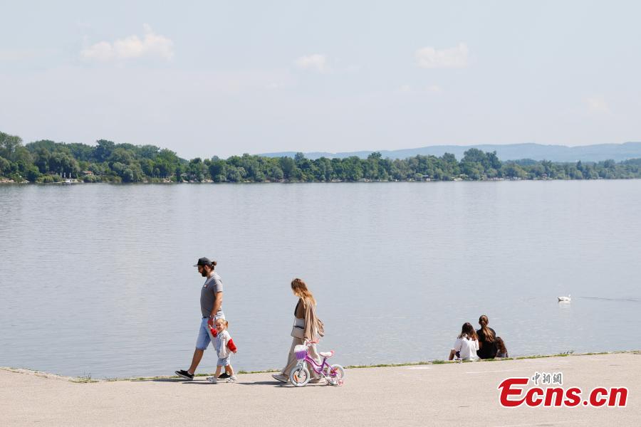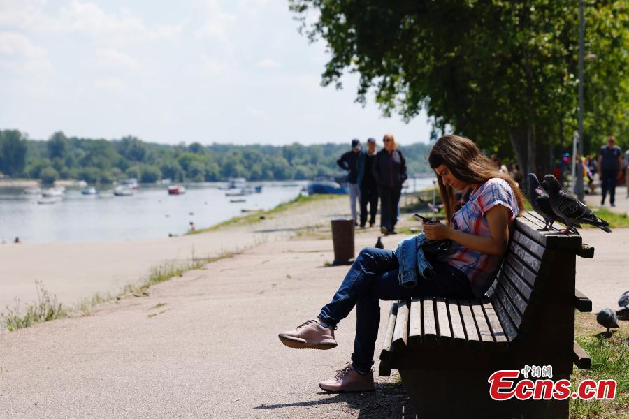 Tourists walk along the Danube River in Belgrade, Serbia, May 6, 2024. (Photo: China News Service/Han Haidan)