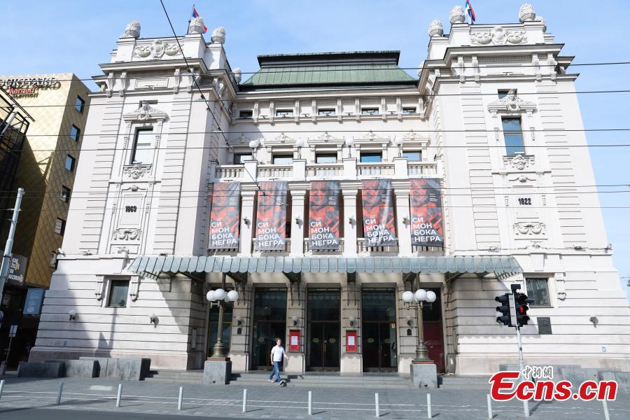 A man walks out of the Belgrade National Theater in Serbia, May 6, 2024. (Photo: China News Service/Han Haidan)