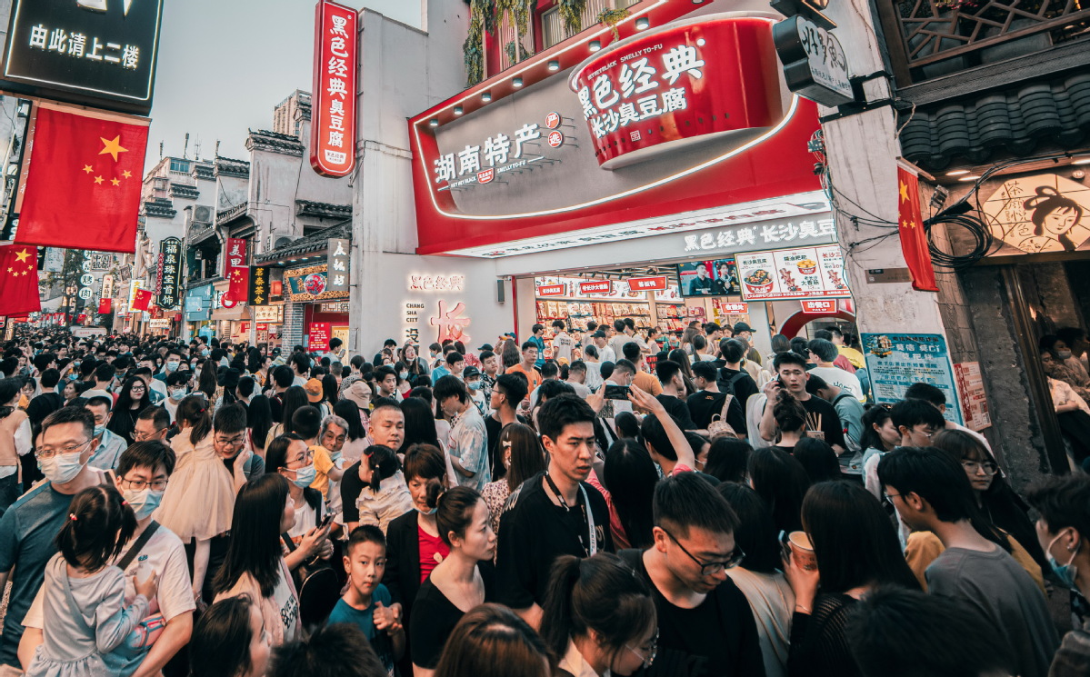 Crowds throng a Hey Hey Black stinky tofu store on Huangxing South Road in Changsha, Hunan province, in May 2023. [Photo/China Daily]