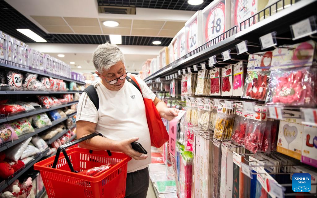 A man shops at the Experience Center of the Central European Trade and Logistics Cooperation Zone (CECZ) in Budapest, Hungary, on April 29, 2024. Founded in 2012, the Central European Trade and Logistics Cooperation Zone (CECZ) is a major trade hub that facilitates trade cooperation between Hungarian and Chinese companies and also between China and the other countries of Central and Eastern Europe (CEEC). (Xinhua/Zhang Fan)