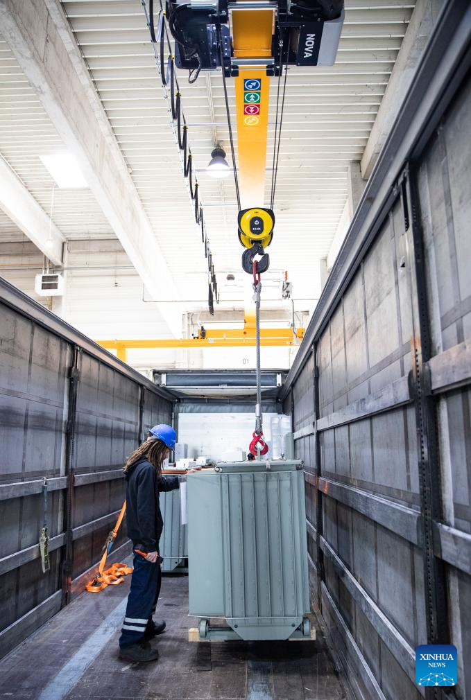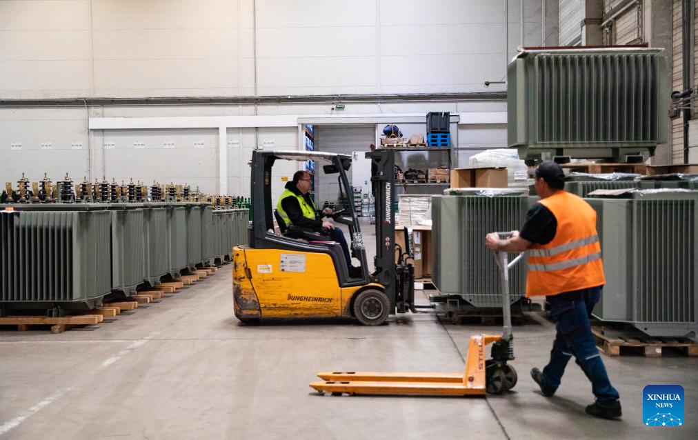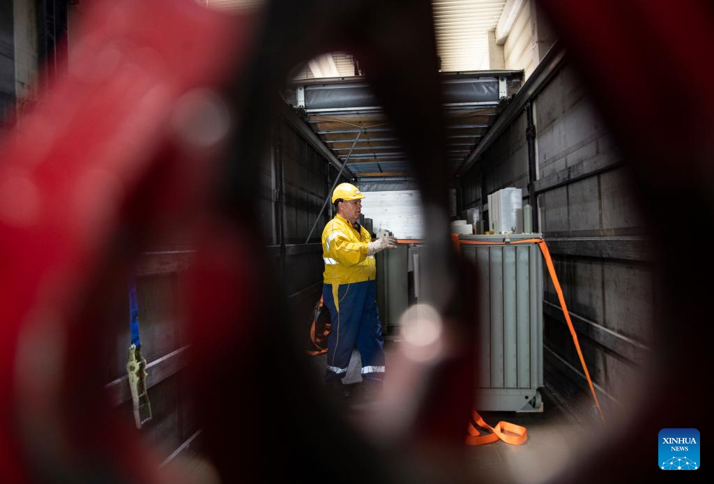 A worker operates at the Csepel Freeport Logistics Park of the Central European Trade and Logistics Cooperation Zone in Budapest, Hungary on April 29, 2024. Founded in 2012, the Central European Trade and Logistics Cooperation Zone (CECZ) is a major trade hub that facilitates trade cooperation between Hungarian and Chinese companies and also between China and the other countries of Central and Eastern Europe (CEEC). (Xinhua/Zhang Fan)