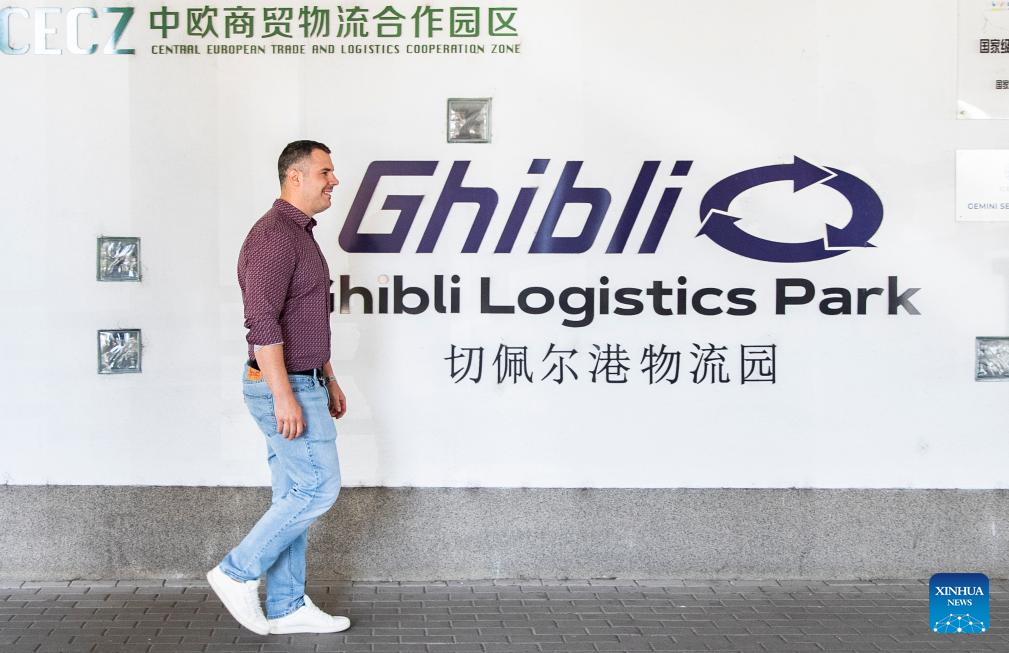 A staff member is about to enter the office building at Csepel Freeport Logistics Park of the Central European Trade and Logistics Cooperation Zone in Budapest, Hungary, on April 29, 2024. Founded in 2012, the Central European Trade and Logistics Cooperation Zone (CECZ) is a major trade hub that facilitates trade cooperation between Hungarian and Chinese companies and also between China and the other countries of Central and Eastern Europe (CEEC). (Xinhua/Zhang Fan)