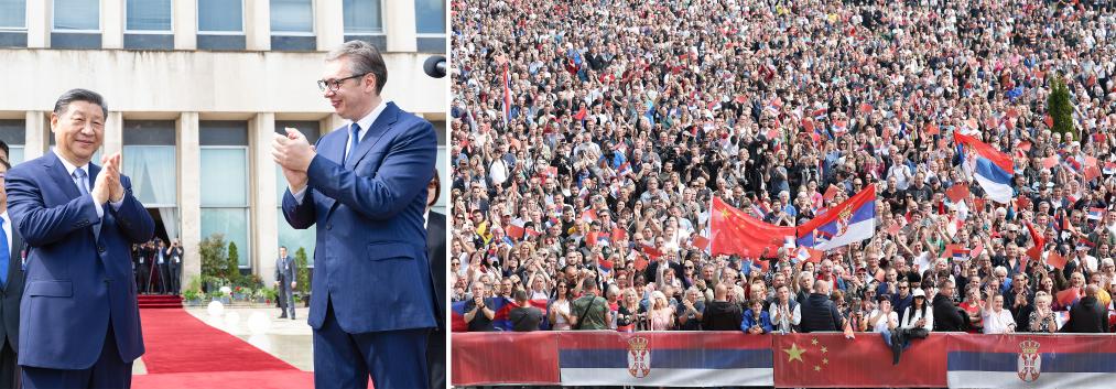 Prior to their meeting, Vucic accompanied Xi to the platform of the Palace of Serbia. On the square in front of the Palace, some 15,000 Serbian people were waving national flags of China and Serbia to express the warmest welcome to Xi. The Chinese leader waved to the crowd, which burst into jubilant, prolonged applause and cheers.
