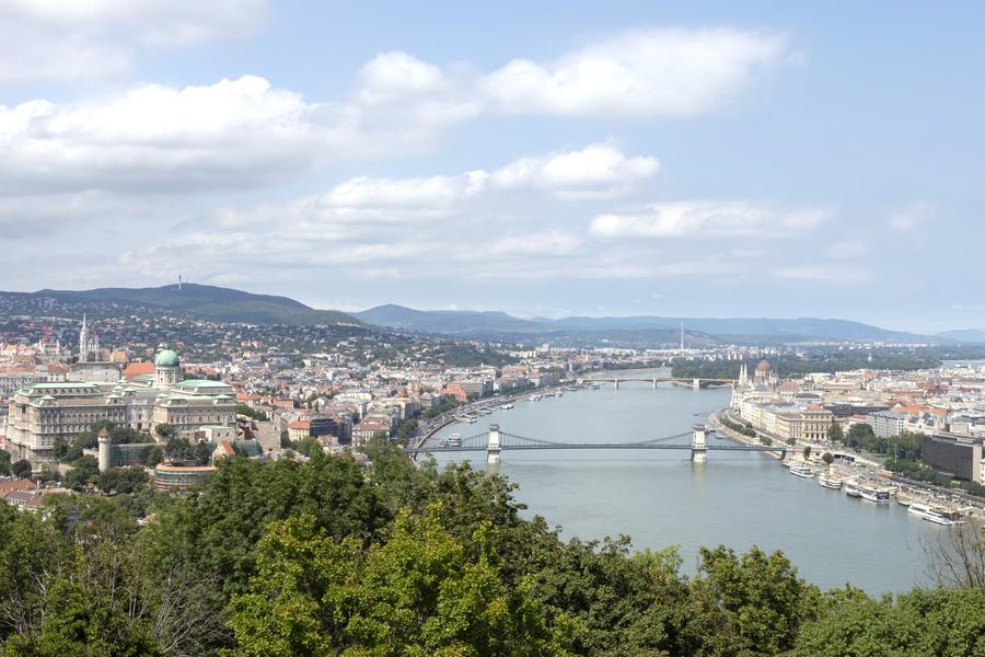This photo taken on Aug. 4, 2023 shows the Chain Bridge spanning the Danube River in Budapest, Hungary. (Photo by Attila Volgyi/Xinhua)