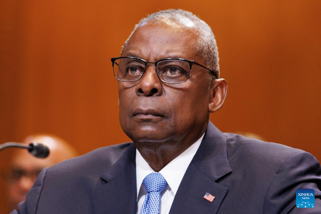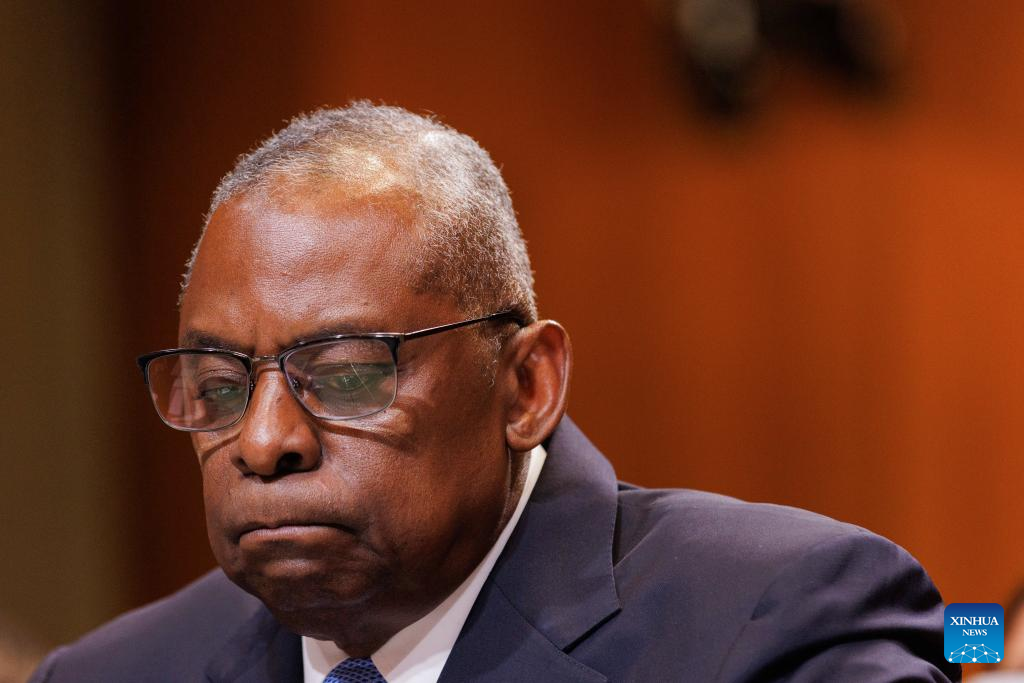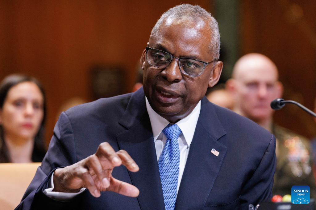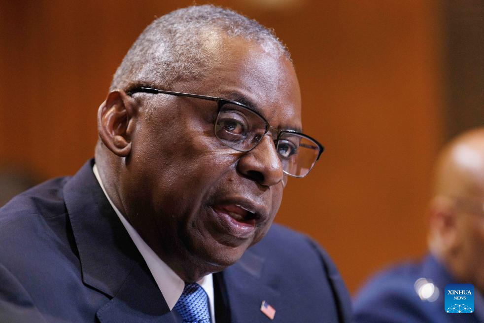 U.S. Defense Secretary Lloyd Austin testifies before the Senate Appropriations Committee Subcommittee on Defense in Washington, D.C., the United States, on May 8, 2024. The United States has withheld one shipment of near-term weapons aid to Israel due to "serious concerns" that a looming large-scale military operation in Rafah by Israeli forces would cause significant loss of civilian lives, the State Department said on Wednesday. Earlier on Wednesday, U.S. Defense Secretary Lloyd Austin told senators on Capitol Hill as he testified on the Pentagon's fiscal year 2025 budget proposal that the Pentagon is "going to continue to do what's necessary to ensure that Israel has the means to defend itself." "But that said, we are currently reviewing some near-term security assistance shipments in the context of unfolding events in Rafah," he added. (Photo by Aaron Schwartz/Xinhua)