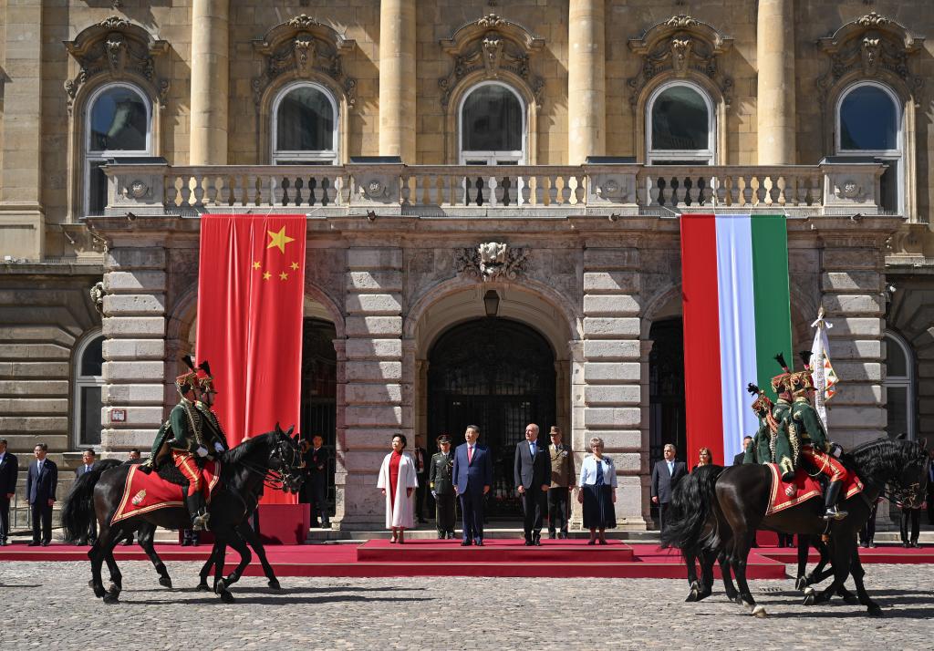 Xi attends welcome ceremony held by Hungarian President Sulyok, Prime Minister Orban in Budapest