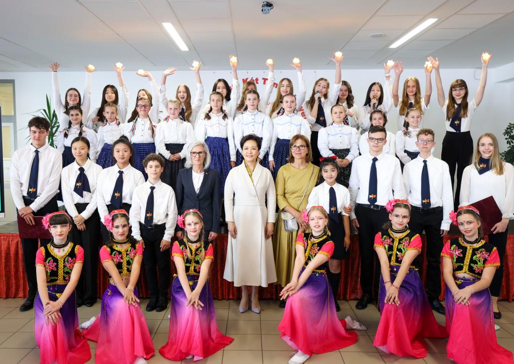 Peng Liyuan visits Hungarian-Chinese bilingual school