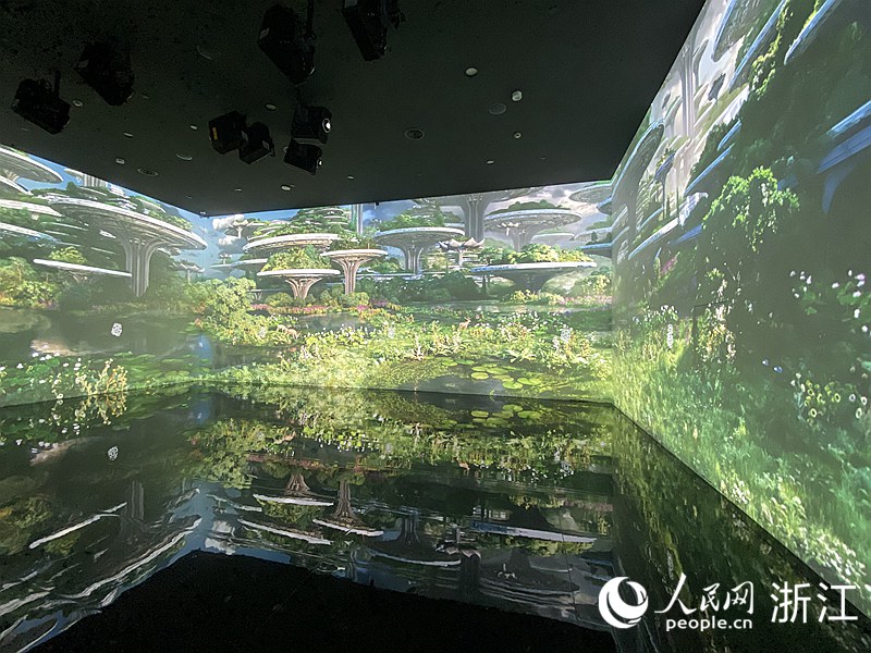 Photo shows an immersive digital exhibition hall, which is located on the basement floor of the National Wetland Museum of China in Hangzhou, east China's Zhejiang Province. (People's Daily Online/Fang Pengyimeng)