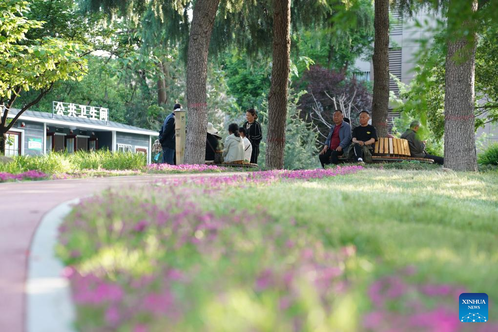 Citizens spend their leisure time at a small city park in Baoji, northwest China's Shaanxi Province, May 9, 2024. Located at the foot of the Qinling Mountains and along the Weihe River, Baoji of northwest China's Shaanxi Province has continued to make efforts to create a livable urban environment. In recent years, a total of 36 small city parks have been built, providing citizens with activity space for leisure and sports, and improving the ecological environment of the city as well. (Xinhua/Shao Rui)