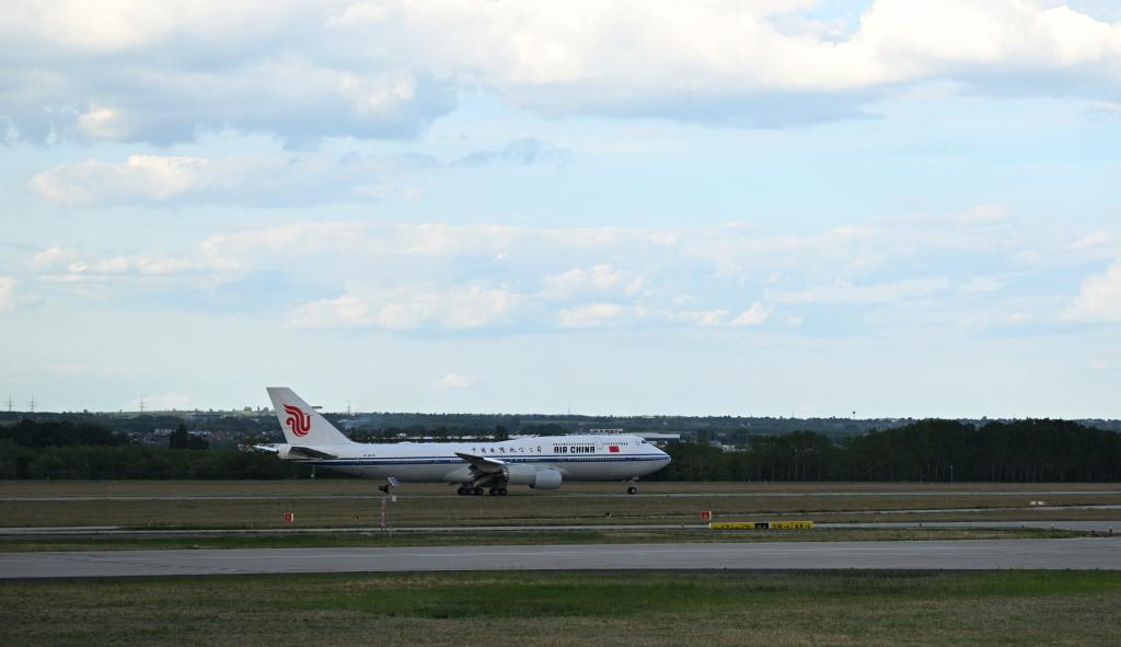 Chinese President Xi Jinping's plane prepares to take off in Budapest, Hungary, May 10, 2024. Chinese President Xi Jinping left Budapest on Friday after paying state visit to Hungary. (Xinhua/Yan Yan)