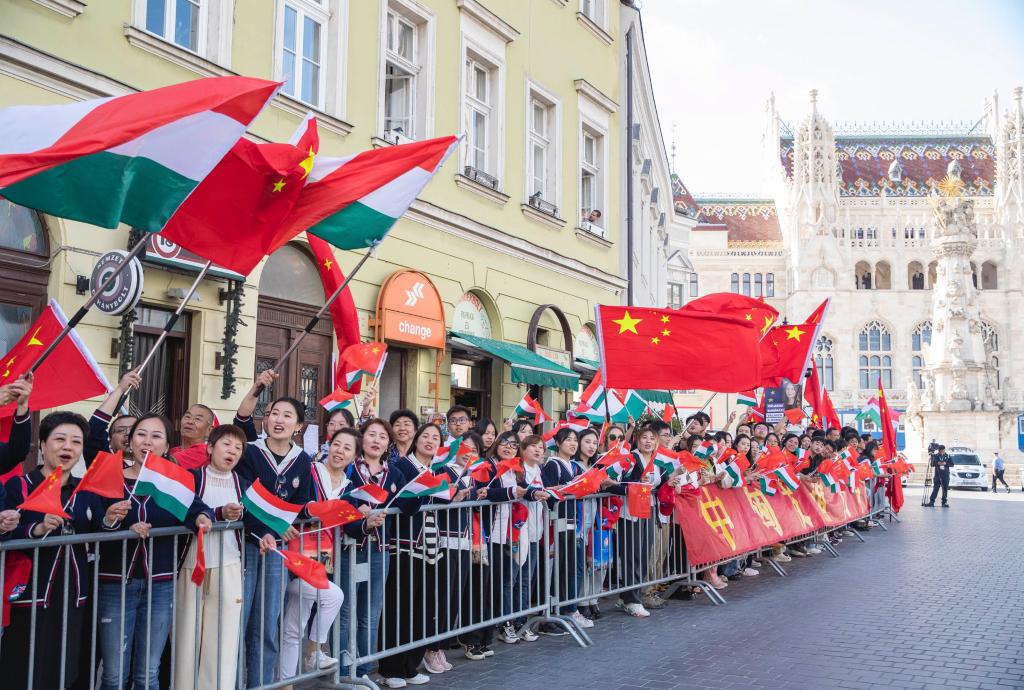 People bid farewell to Chinese President Xi Jinping in Budapest, Hungary, May 10, 2024. Chinese President Xi Jinping left Budapest on Friday after paying state visit to Hungary. (Xinhua/Zhang Fan)