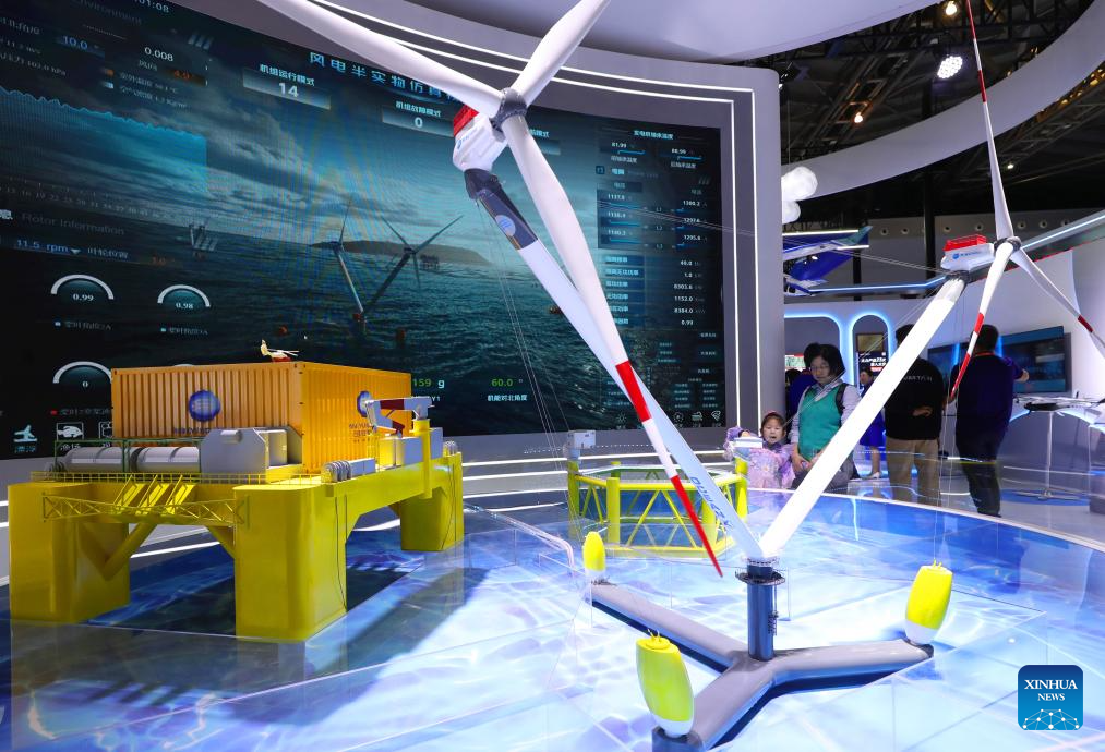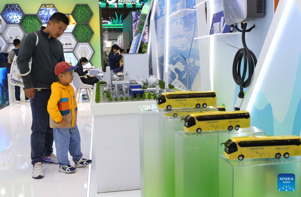 People visit the exhibition area of clean energy and green transportation at the booth of east China's Jiangsu Province during a China brands exposition as part of the 2024 China Brand Day events in Shanghai, east China, May 12, 2024. (Xinhua/Fang Zhe)