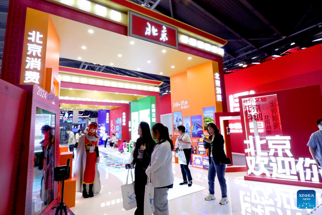People visit the booth of Beijing during a China brands exposition as part of the 2024 China Brand Day events in Shanghai, east China, May 12, 2024. (Xinhua/Fang Zhe)