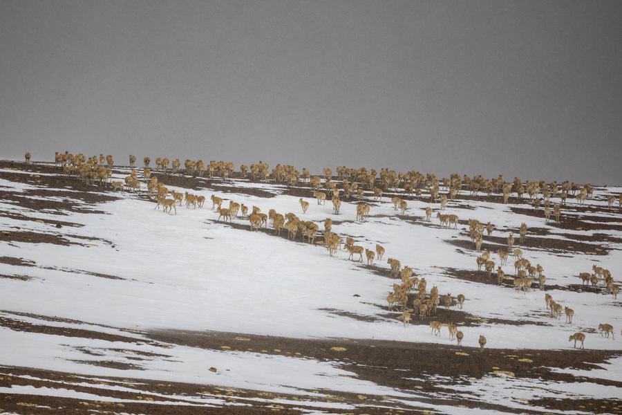 Tibetan antelopes start annual migration to give birth in SW China's Xizang