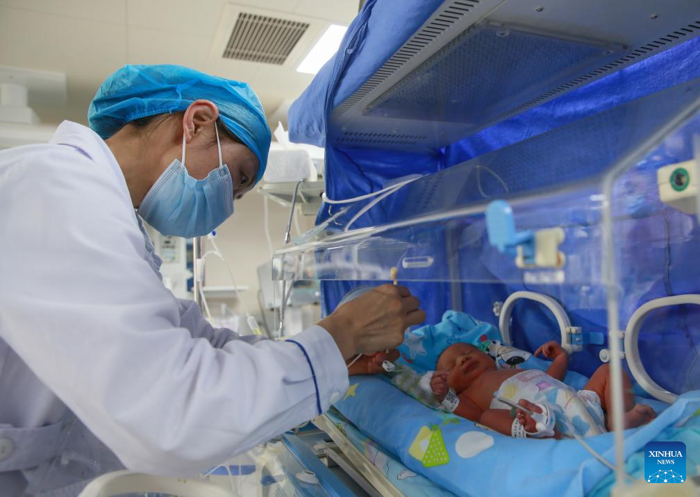 A nurse works at the neonatal intensive care unit (NICU) in a hospital in Qujing City, southwest China's Yunnan Province, May 12, 2024. Sunday marked the 113th International Nurses Day. (Photo by Yang Junpeng/Xinhua)