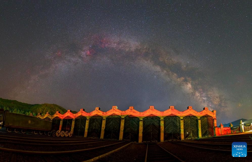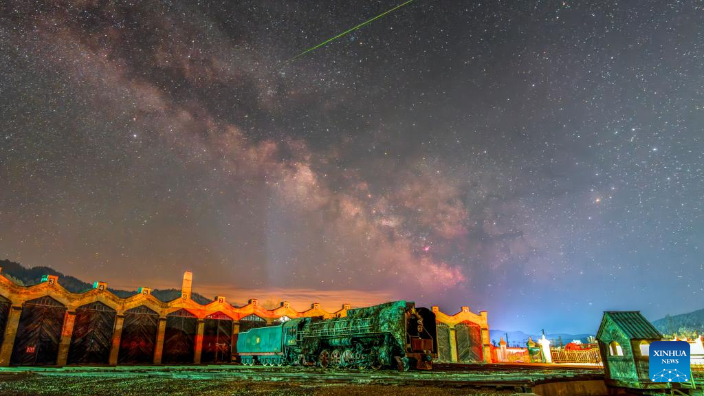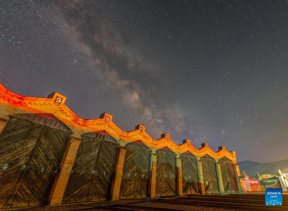 This photo taken on May 8, 2024 shows the Chinese Eastern Railway museum under the Milky Way in Hengdaohezi Town of Hailin City, northeast China's Heilongjiang Province. Dubbed "a town pulled by trains," Hengdaohezi, located in the city of Hailin in northeast China's Heilongjiang Province, was originally established in the late 19th century when Russians built train maintenance workshops and other facilities there following the construction of the Chinese Eastern Railway. Due to well-preserved historic buildings, the exotic town now has become a popular tourist destination. (Photo by Liu Wei/Xinhua)