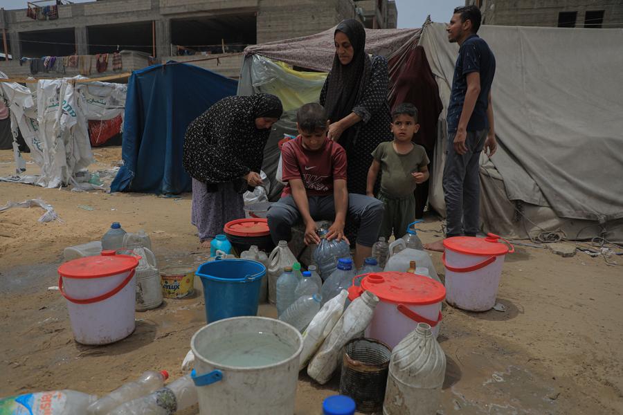 Palestinians are seen at a temporary camp in the southern Gaza Strip city of Rafah, on May 10, 2024. (Photo by Rizek Abdeljawad/Xinhua)