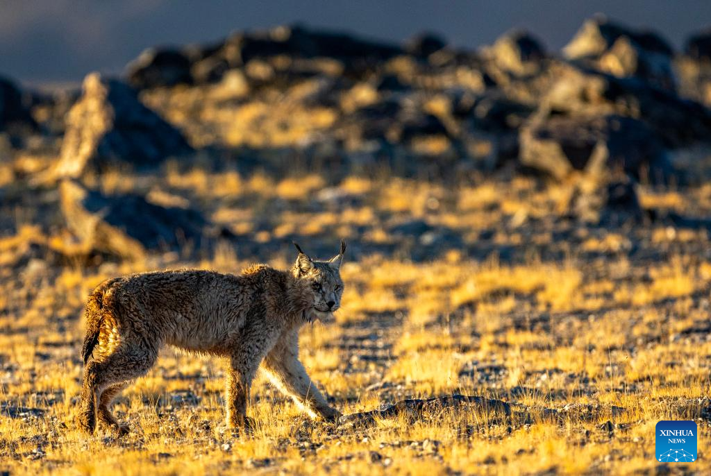 This photo taken on May 12, 2024 shows a lynx at the Changtang National Nature Reserve in Nyima County of Nagqu City, southwest China's Xizang Autonomous Region. Dubbed the "paradise of wild animals," Changtang National Nature Reserve is home to over 30 kinds of wild animals listed on China's national-level protection catalogue, including Tibetan antelopes and wild yaks. (Xinhua/Jiang Fan)