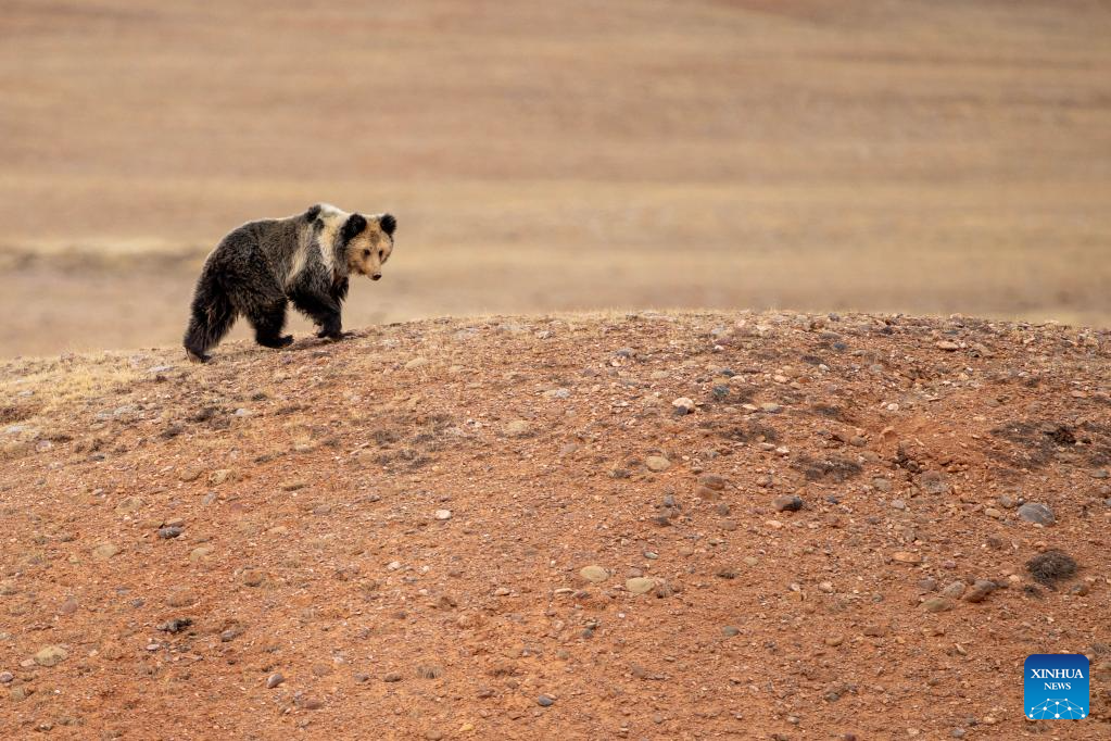 This photo taken on May 7, 2024 shows a brown bear at the Changtang National Nature Reserve in Nyima County of Nagqu City, southwest China's Xizang Autonomous Region. Dubbed the "paradise of wild animals," Changtang National Nature Reserve is home to over 30 kinds of wild animals listed on China's national-level protection catalogue, including Tibetan antelopes and wild yaks. (Xinhua/Jiang Fan)