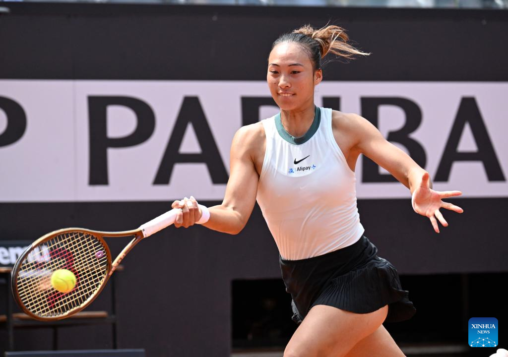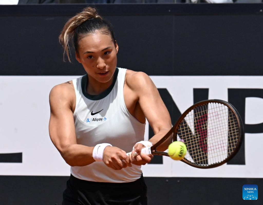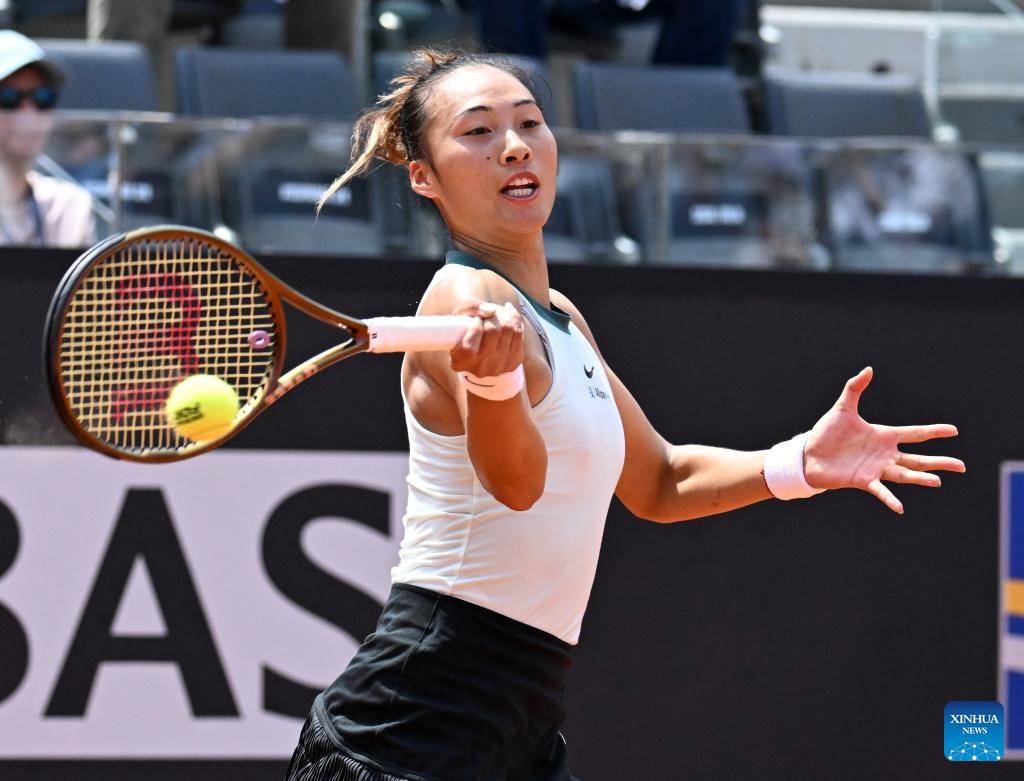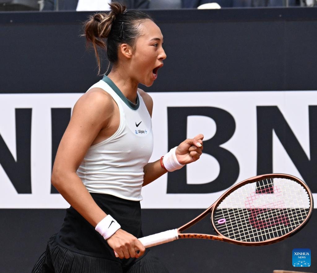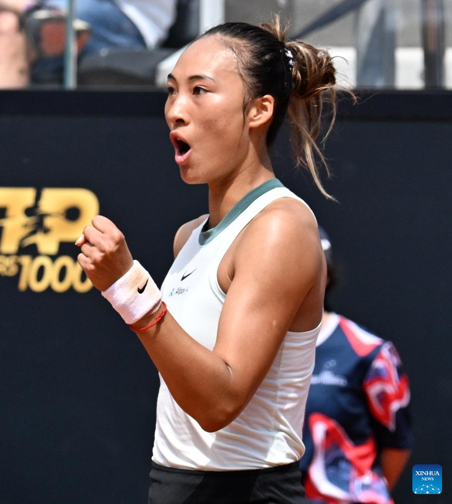 ROME, May 13 (Xinhua) -- Seventh seed Zheng Qinwen of China triumphed over former world No. 1 Naomi Osaka of Japan 6-2, 6-4 in the fourth round of the WTA 1000 Rome on Monday to secure her spot in the quarterfinals.