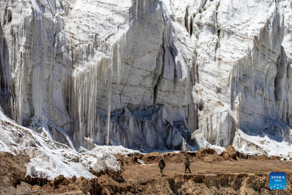 Rangers patrol the Zangser Kangri Glacier at the Changtang National Nature Reserve in Nyima County of southwest China's Xizang Autonomous Region, May 11, 2024. (Xinhua/Jiang Fan)