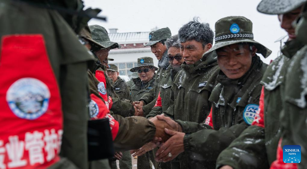 Rangers of a wildlife protection station welcome their colleagues at the Changtang National Nature Reserve in Nyima County of southwest China's Xizang Autonomous Region, May 7, 2024. (Xinhua/Tenzin Nyida)