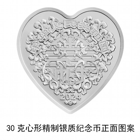 The 30-gram heart-shaped silver coin will be 10 yuan in denomination, with 50,000 to be issued.