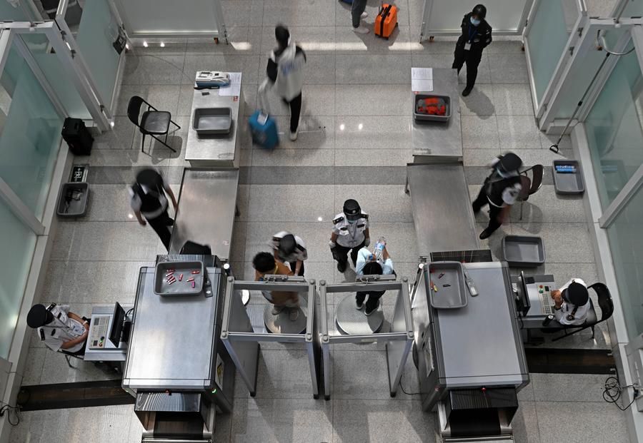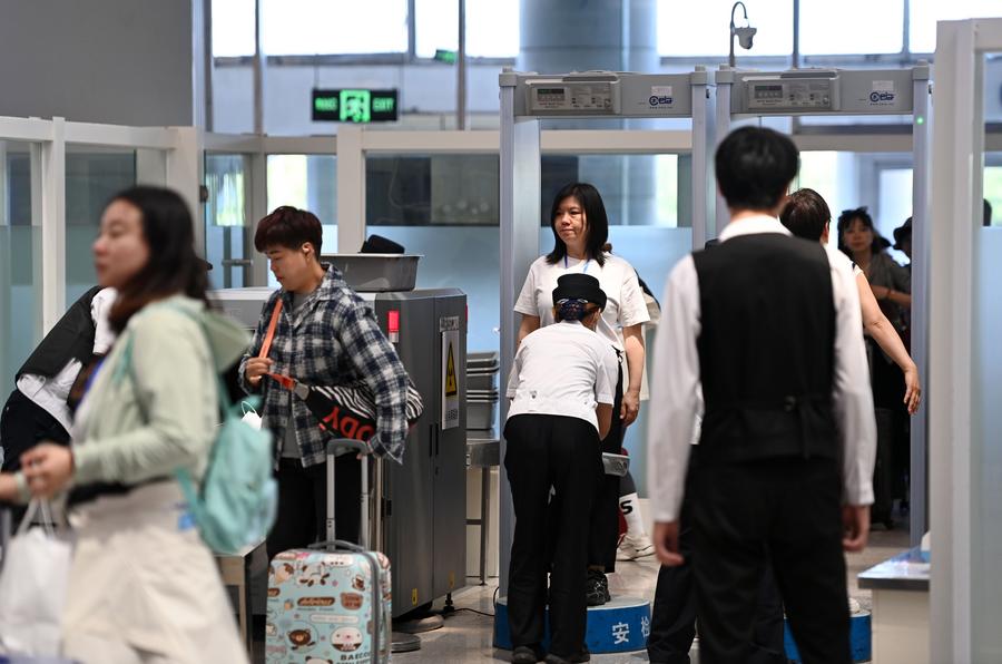 Passengers pass through the security check at Tianjin International Cruise Home Port in north China's Tianjin Municipality, May 15, 2024. (Xinhua/Zhao Zishuo)