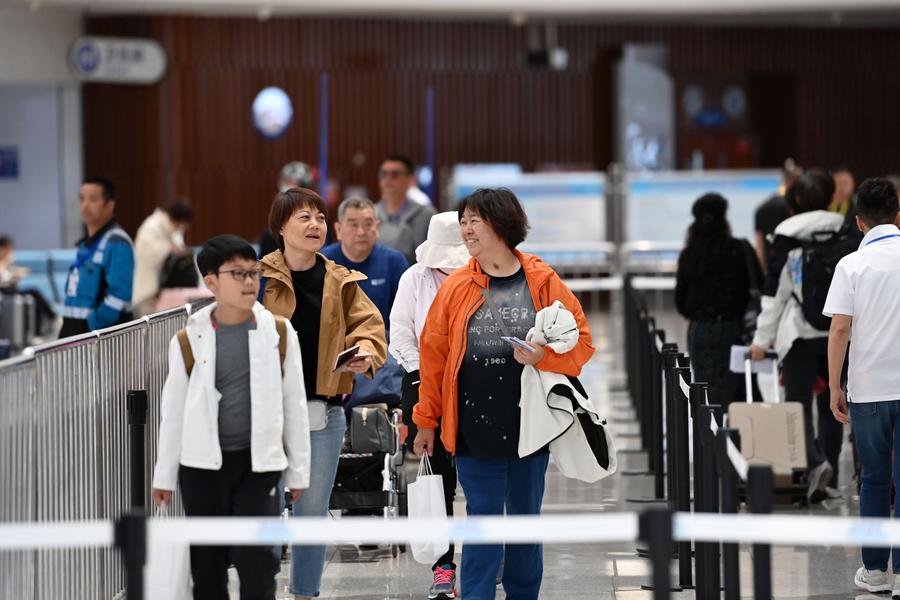 Passengers line up for embarkation procedures at Tianjin International Cruise Home Port in north China's Tianjin Municipality, May 15, 2024. (Xinhua/Zhao Zishuo)