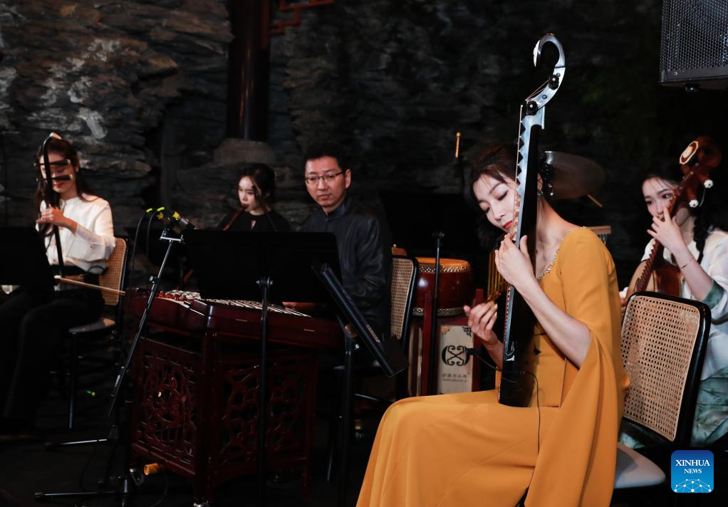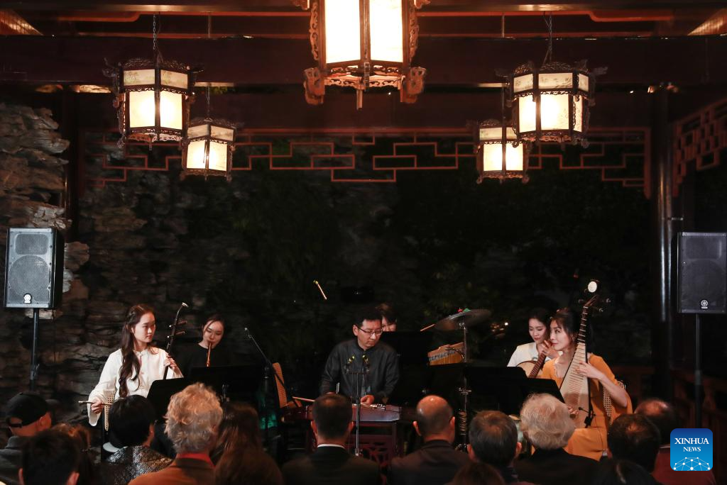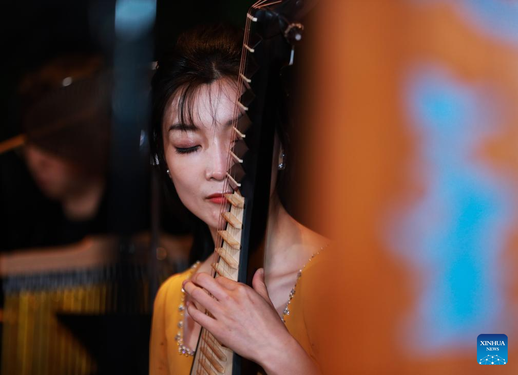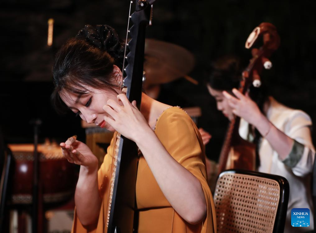 Musicians from China Conservatory of Music stage a Chinese folk music performance themed "Pipa Ballad: Strings through the Seasons" at the Chinese Garden of Friendship in Sydney, Australia, May 15, 2024. (Xinhua/Ma Ping)
