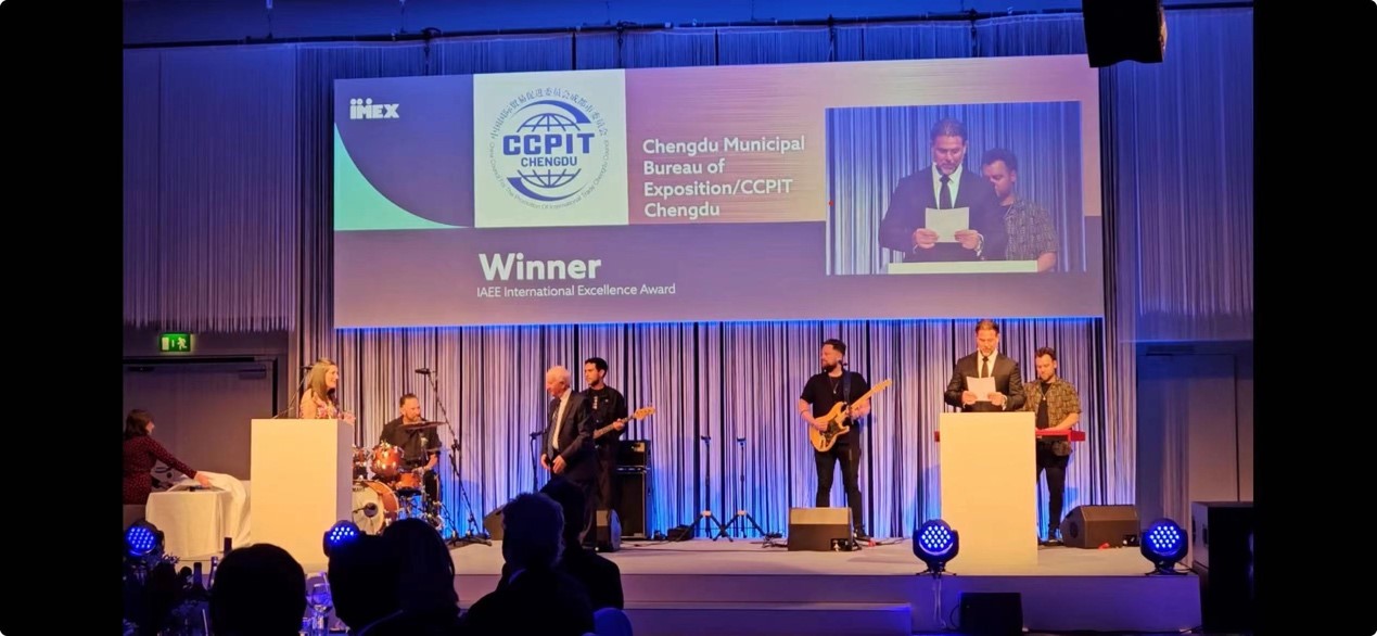The southwestern city in Sichuan Province is the first Chinese city to receive this annual award, which recognizes an organization's impact on internationalization, personnel training and driving effect in the global exhibitions and events industry.