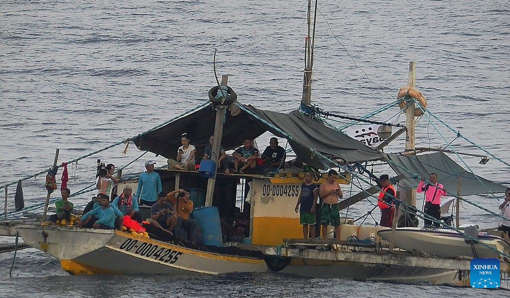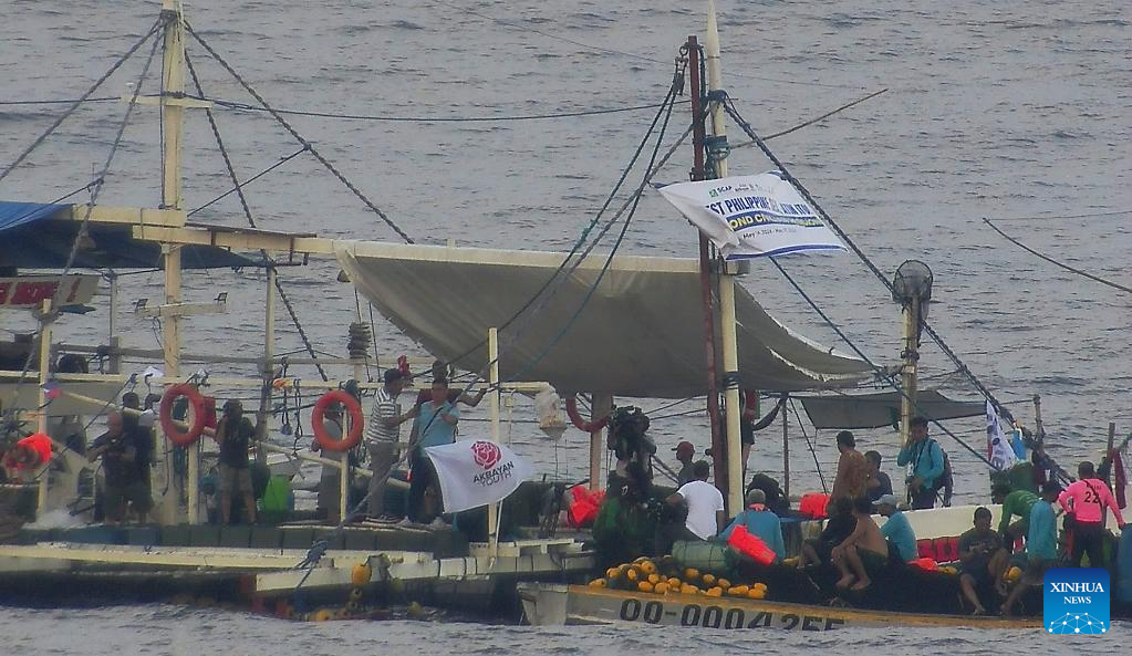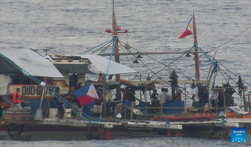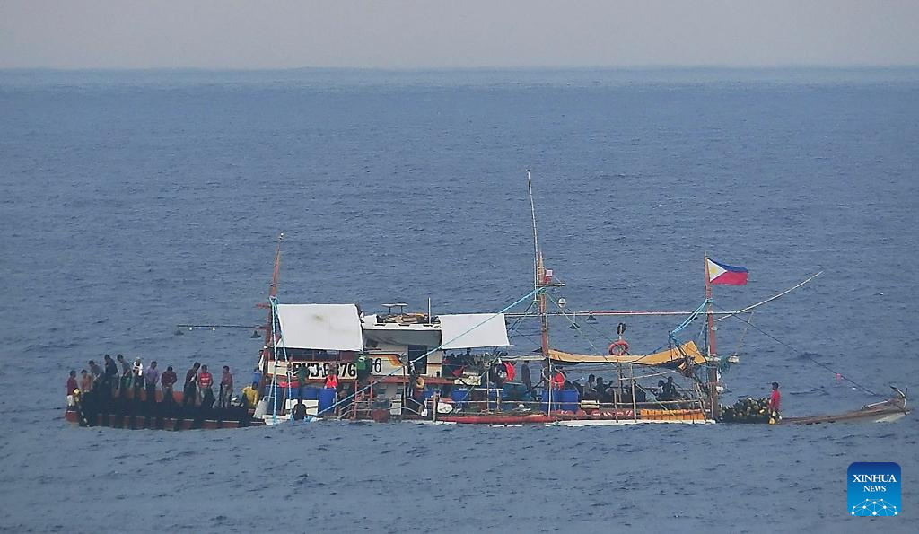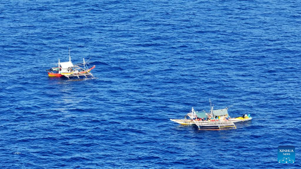 Several Philippine ships gather illegally and conduct activities irrelevant to legitimate fishing in the surrounding waters of Huangyan Dao, May 16, 2024. The China Coast Guard (CCG) are intensifying monitoring and evidence collection concerning these ships. (CCG/Handout via Xinhua)