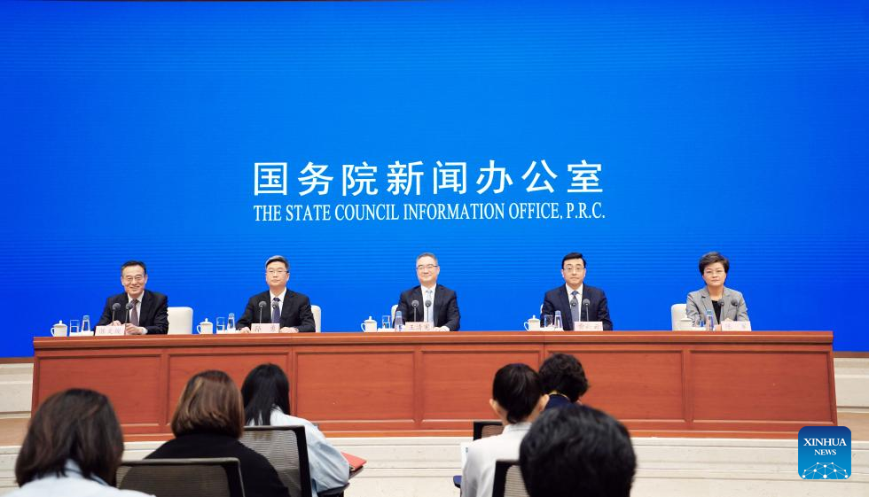 Provincial officials of east China's Anhui Province attend a press conference on charting a new course for Anhui's high-quality development in the new era by pursuing innovation-driven growth, in Beijing, capital of China, May 16, 2024.(Xinhua/Pan Xu)