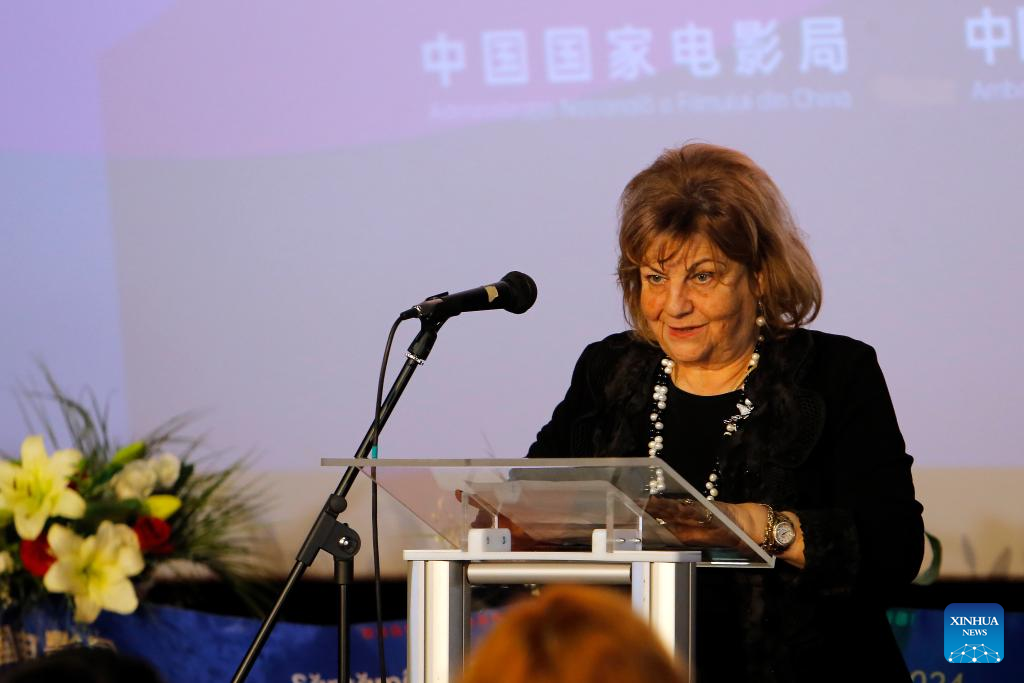 Irina Cajal, undersecretary of state of the Romanian Culture Ministry, speaks during the opening ceremony of the 2024 Chinese Film Week in Bucharest, Romania, May 15, 2024. (Photo by Cristian Cristel/Xinhua)