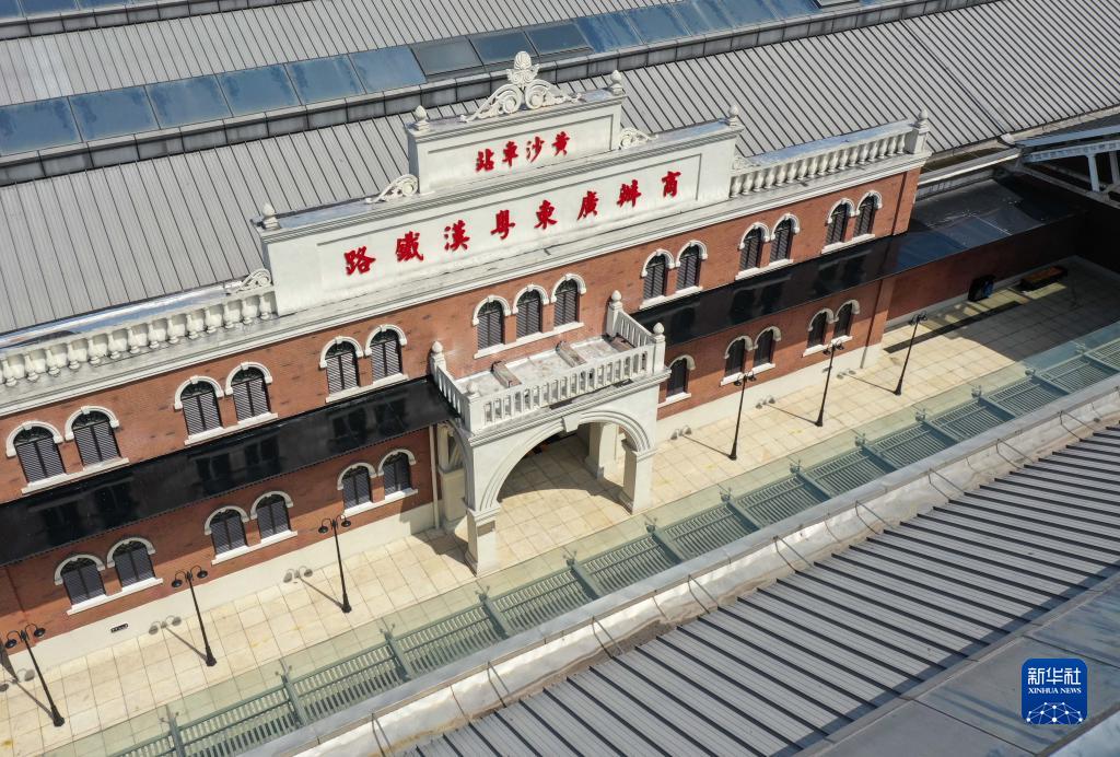An aerial drone photo taken on May 18, 2022 shows the restored appearance of the century-old Huangsha Station in the Guangzhou Railway Museum in Guangzhou, south China’s Guangdong Province. (Xinhua/Deng Hua)