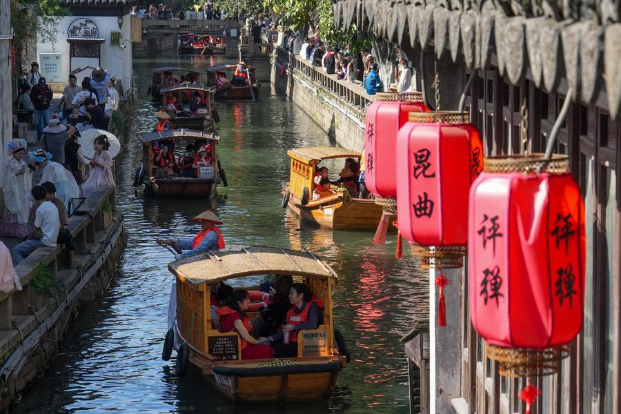 In east China's Jiangsu Province, the Pingjiang Road historical and cultural block in Suzhou bustles with visitors even in the off season.
