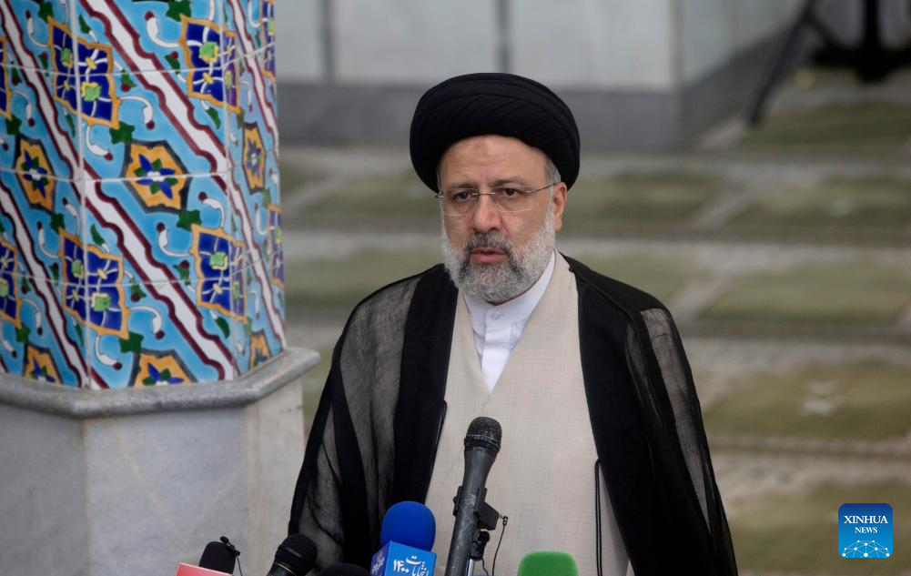 This file photo taken on June 18, 2021 shows Ebrahim Raisi speaking at a polling station in Tehran, Iran. Iran's President Ebrahim Raisi and Iran's Foreign Minister died in a helicopter accident, according to local media. (Photo by Ahmad Halabisaz/Xinhua)