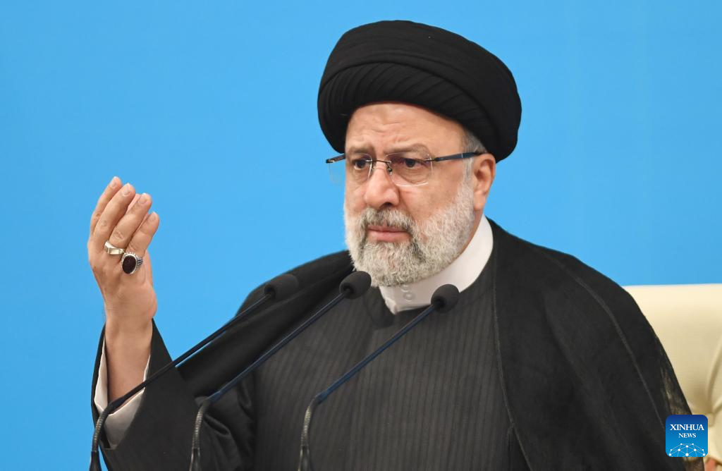 This file photo taken on Aug. 29, 2023 shows Iran's President Ebrahim Raisi in Tehran, Iran. Iran's President Ebrahim Raisi and Iran's Foreign Minister died in a helicopter accident, according to local media. (Xinhua/Shadati)