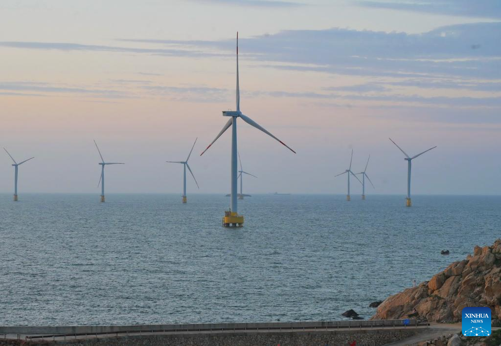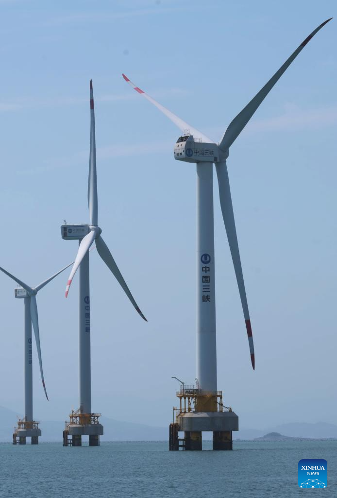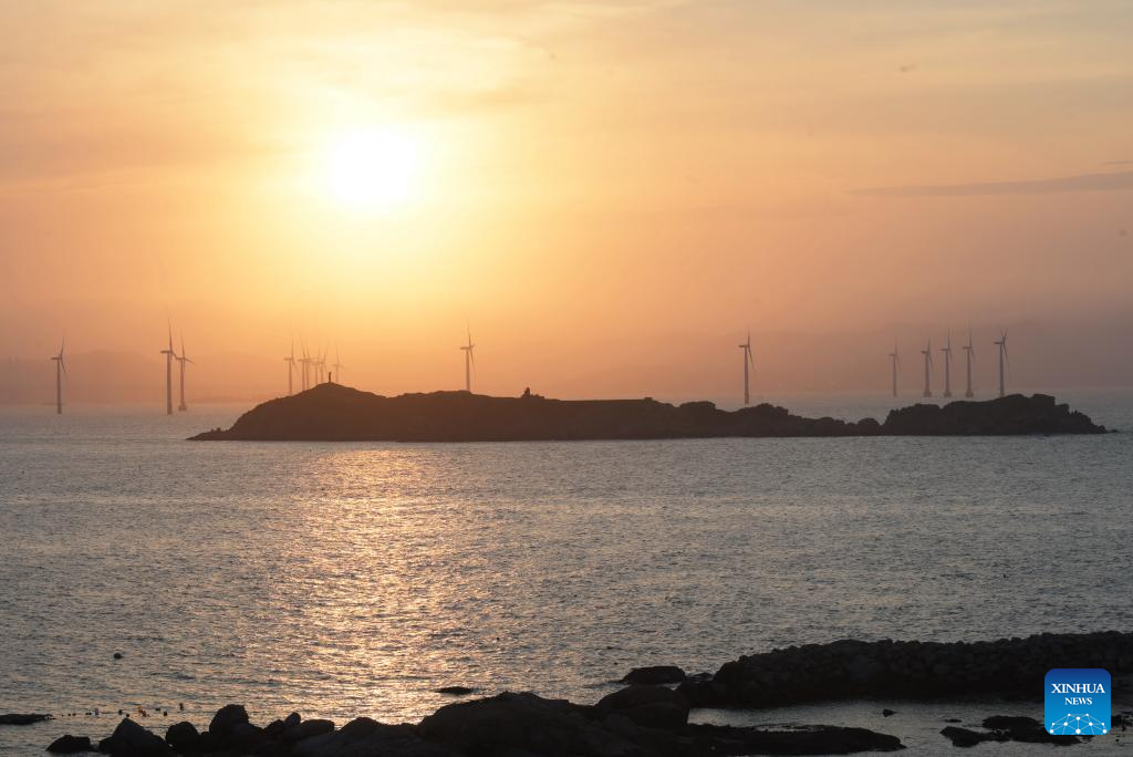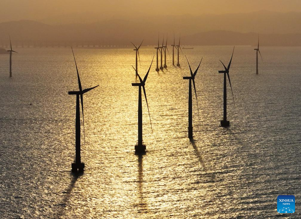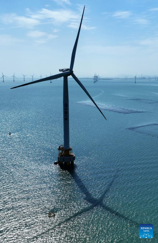 This photo taken on May 17, 2024 shows an offshore wind farm operated by the China Three Gorges Corporation in Xinghua Bay, southeast China's Fujian Province. In recent years, Fujian has accelerated the development of clean energy, including wind and nuclear power, to promote the green and low-carbon development of the society. (Xinhua/Lin Shanchuan)
