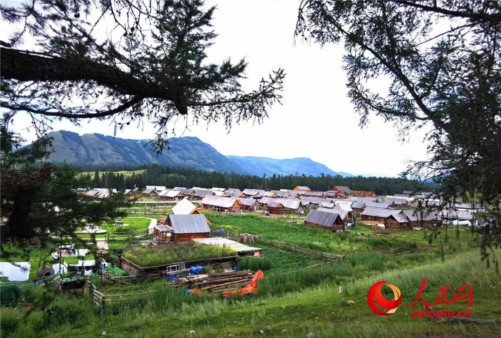 Photo shows the Hemu village surrounded by forests in Altay Prefecture, northwest China’s Xinjiang Uygur Autonomous Region. (People’s Daily Online/Han Ting)