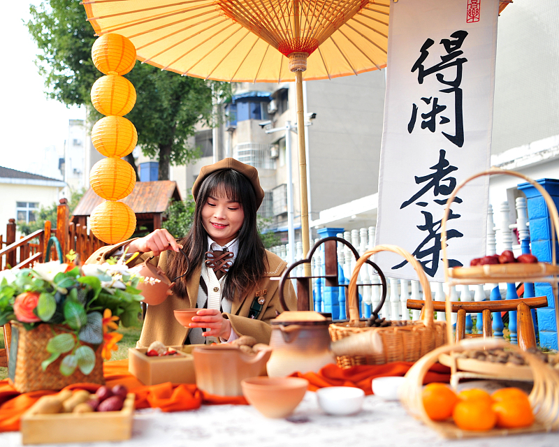A girl makes tea in a teahouse in Wuhan, central China's Hubei Province. (Photo/CFP)
