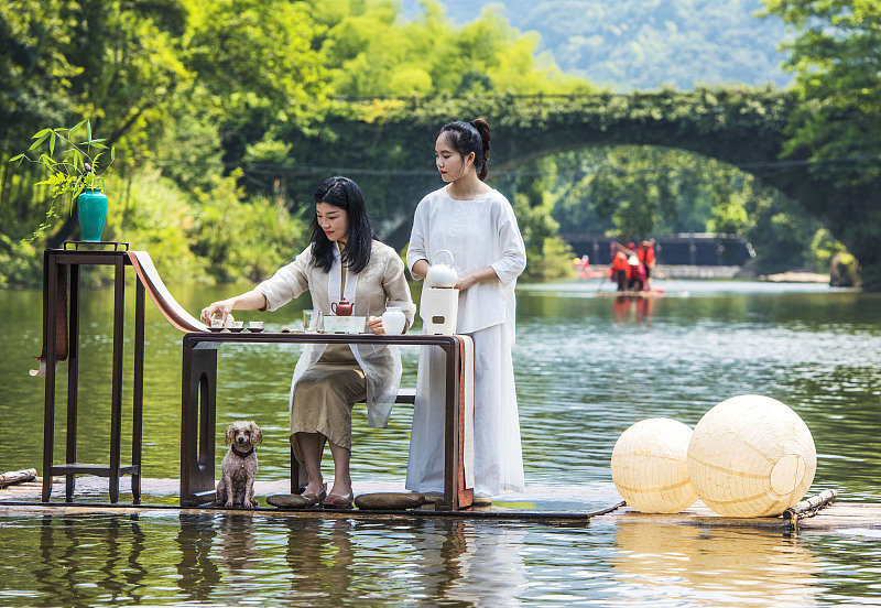 Tea artisans perform tea art at a scenic area in east China's Jiangxi Province. (Photo/CFP)