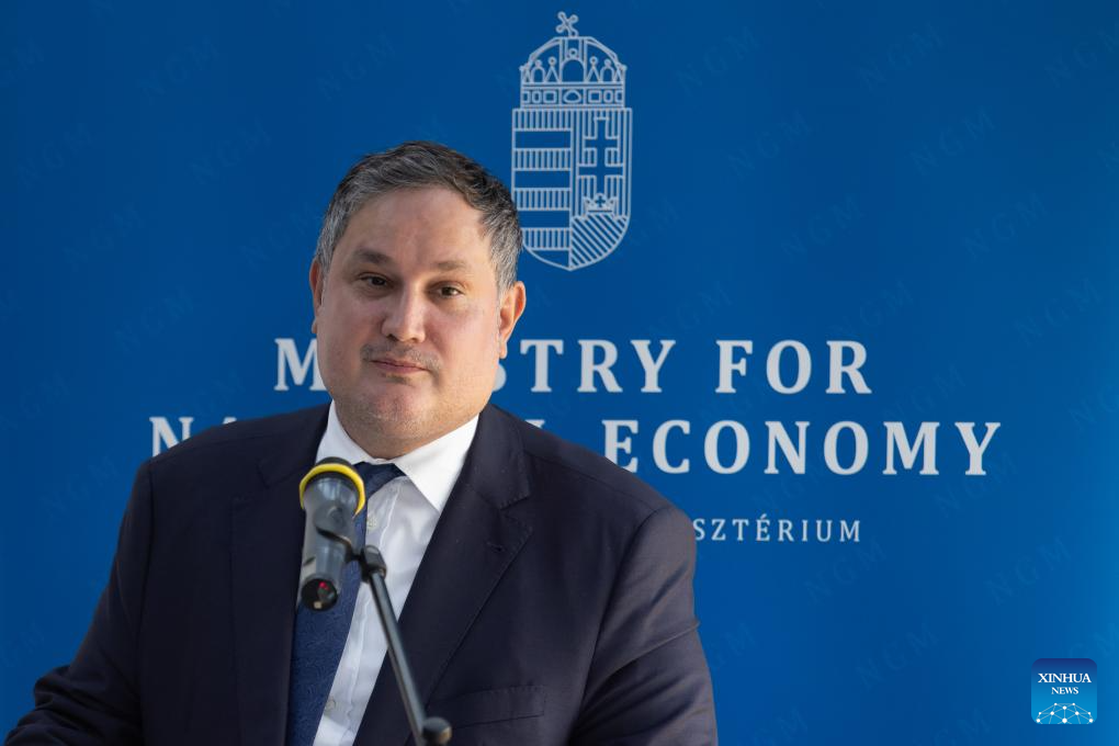 Marton Nagy, Hungarian minister for national economy, attends a signing ceremony in Budapest, Hungary, on May 21, 2024. China's NIO, a leading global smart electric vehicle (EV) company, announced a strategic partnership with Hungary's Istvan Szechenyi University Foundation here on Tuesday. (Photo by Attila Volgyi/Xinhua)