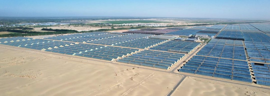 Photo shows desert greenhouses in Hotan, northwest China's Xinjiang Uygur autonomous region. (Photo from the official account of the Institute of Urban Agriculture, Chinese Academy of Agricultural Sciences on WeChat)